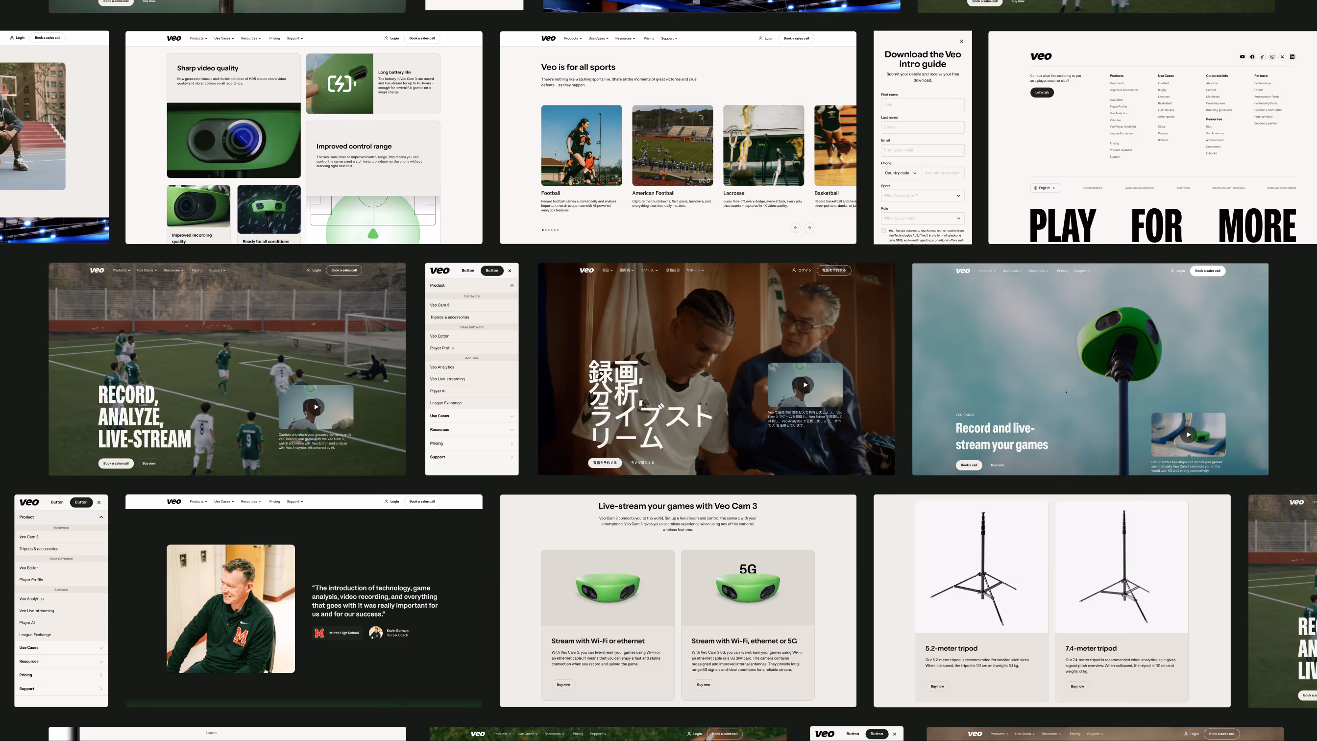 With the launch of the new Veo Cam 3, Oimachi partnered with Veo to evolve their digital presence. Together, we gradually migrated their website to Webflow, building a scalable system of flexible components grounded in a solid design framework – giving Veo a strong foundation for future growth.